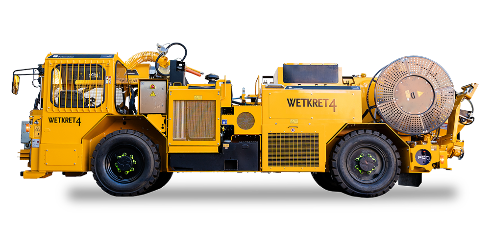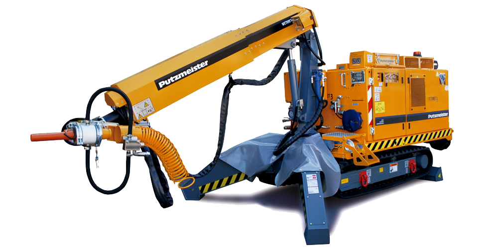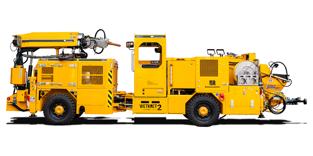 Ideal for mining galleries, thanks to its its heavy-duty chassis, Putzmeister's concrete pump and synchronized additive system